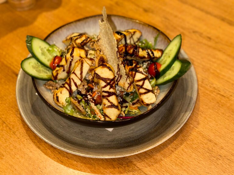 Pan fried Cypriot white cheese served with garnish